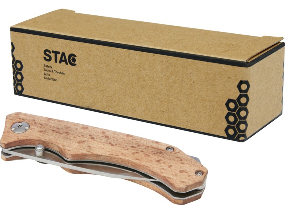 Прочный, надежный и компактный карманный нож из качественной нержавеющей стали с ручками из буковой древесины. Обязательный аксессуар для любого скаута, мастера и других любителей выживания или активного отдыха. Используемая буковая древесина поступает от надежных поставщиков, соблюдающих все экологические и социальные нормы. Нож поставляется с предохранительным замком и зажимом для ремня, размер в открытом состоянии составляет 19 x 2 x 2,5 см, а в закрытом — 11 x 2 x 2,5 см. Поставляется с инструкцией по эксплуатации и в подарочной коробке из переработанного картона размером 14 x 4 x 3,5 см. В качестве экологически рационального варианта печати рекомендуется лазерная гравировка.
