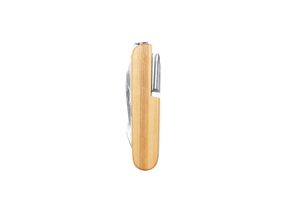 Мультифункциональный нож из нержавеющей стали и бамбуковым корпусом. 9 функций. В комплекте ремень для транспортировки из кожзаменителя.