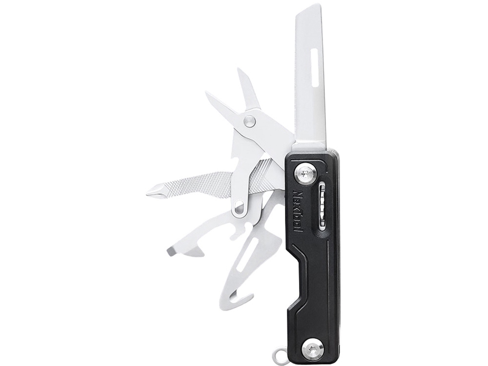 Нож-брелок NexTool Knight EDC – складной многофункциональный нож 10 в 1. Вес составляет всего 88 грамм, а размеры настолько малы, что его можно использовать как брелок для ключей, а так же этот мультитул незаменимая вещь в повседневной жизни, в походе, на охоте или рыбалке. Корпус состоит из прочного, матового ABS пластика, который обволакивает высокопрочную сталь марки 20Cr13 (корпус) и 30Cr13 (нож). Марка стали 30Cr13 (производство Германия) нержавеющая (коррозионно-стойкая). Ножи этой марки стали износостойки, легко переносят удары и не будут раскалываться при пользовании. Перечень функционала: нож (длина лезвия 5 см), аварийный молоток для разбивания стекла, открывалка консервных банок, стропорез (разрежет ремень, веревку, шнурки), ножницы, держатель для телефона (вертикальный и горизонтальный), ключ для извлечения сим-карты, напильник, открывалка для бутылок, отвертка.