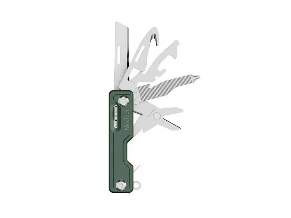 Нож-брелок NexTool Knight EDC – складной многофункциональный нож 10 в 1. Вес составляет всего 88 грамм, а размеры настолько малы, что его можно использовать как брелок для ключей, а так же этот мультитул незаменимая вещь в повседневной жизни, в походе, на охоте или рыбалке. Корпус состоит из прочного, матового ABS пластика, который обволакивает высокопрочную сталь марки 20Cr13 (корпус) и 30Cr13 (нож). Марка стали 30Cr13 (производство Германия) нержавеющая (коррозионно-стойкая). Ножи этой марки стали износостойки, легко переносят удары и не будут раскалываться при пользовании. Перечень функционала: нож (длина лезвия 5 см), аварийный молоток для разбивания стекла, открывалка консервных банок, стропорез (разрежет ремень, веревку, шнурки), ножницы, держатель для телефона (вертикальный и горизонтальный), ключ для извлечения сим-карты, напильник, открывалка для бутылок, отвертка.