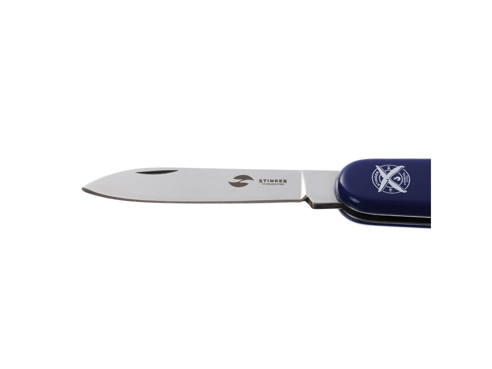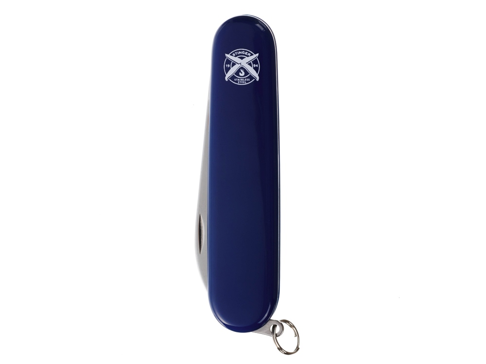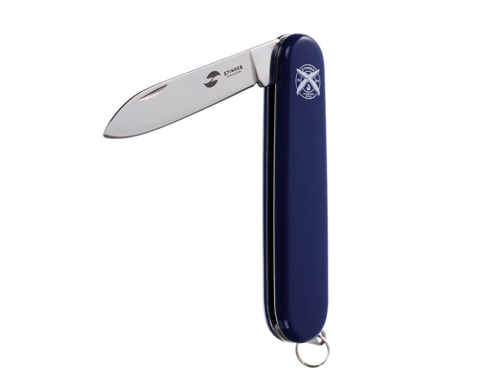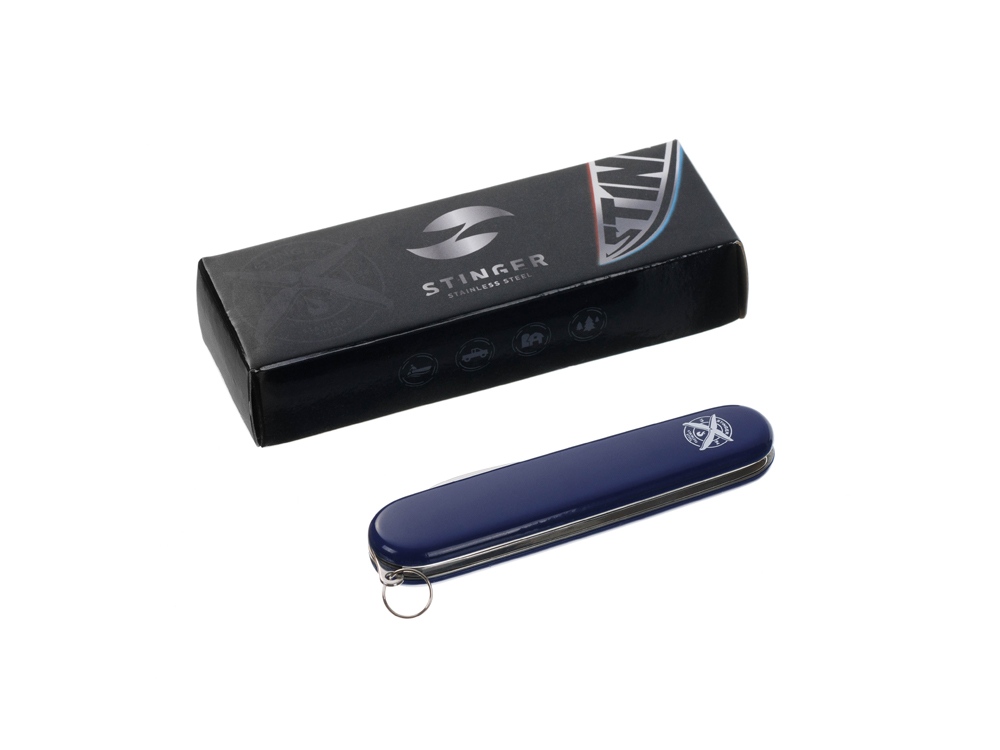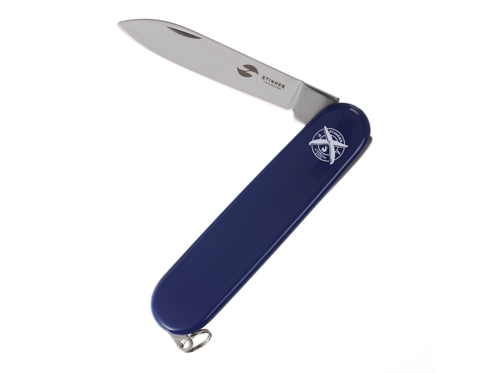 Нож перочинный STINGER имеет 2 функции: 1. Лезвие 2. Кольцо для ключей ХАРАКТЕРИСТИКИ Материалы • лезвие/инструменты: нержавеющая сталь 420, твердость 44-48 HRC • рукоять: нержавеющая сталь 420, твердость 44-48 HRC • накладки рукояти: АБС-пластик Размеры • Размеры ножа: 90х26,5х14 мм • Общая длина: 160,1 мм • Длина клинка: 67,5 мм • Наибольшая ширина клинка: 12,3 мм • Толщина обуха: 2,5 мм • Длина рукояти: 92,6 мм • Ширина рукояти (в ср.части): 20,3 мм • Толщина рукояти (в ср.части): 12,1 мм Вес: 50 г Цвет накладок рукояти: синий Накладки рукояти ножа не подлежат замене. Упаковка: картонная коробка