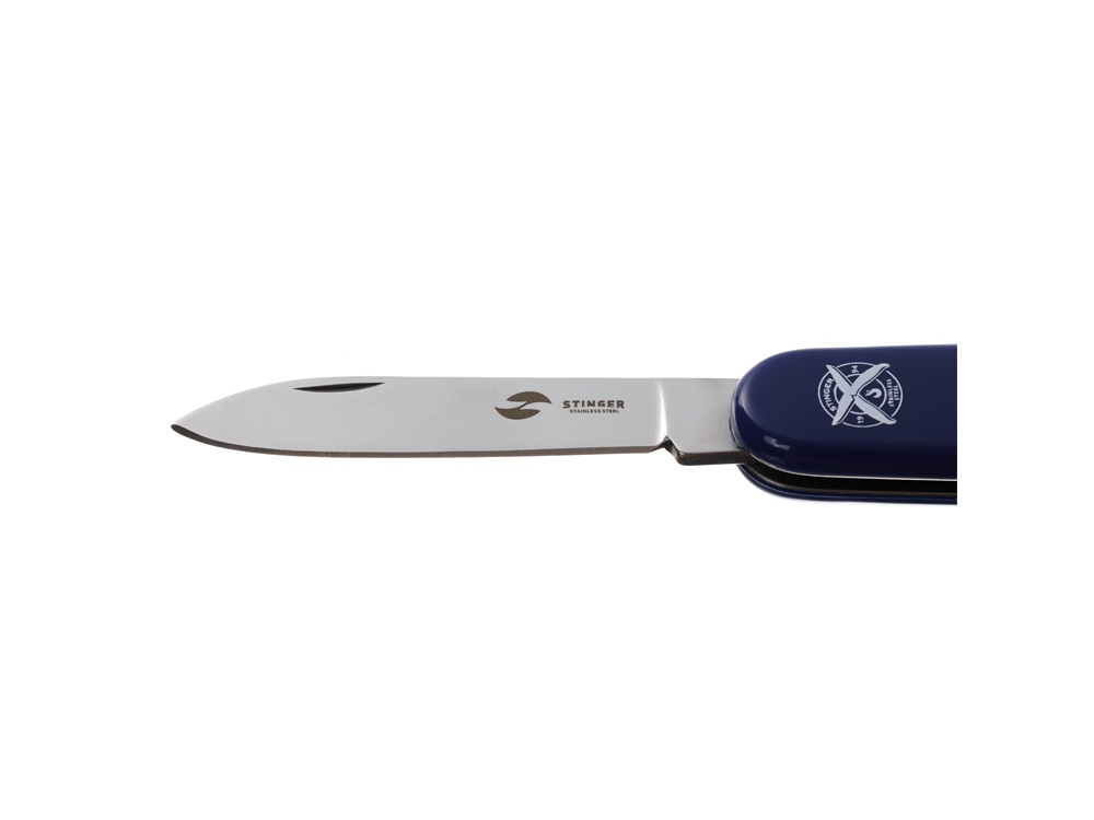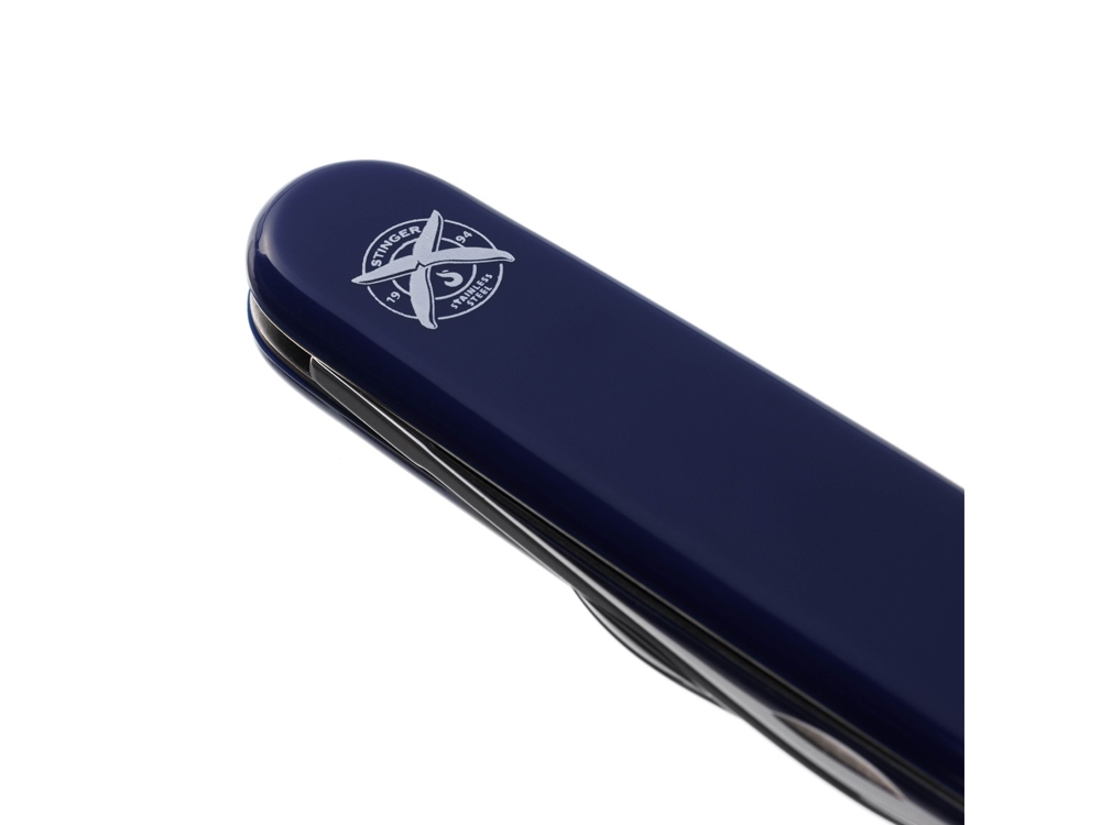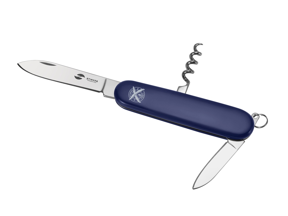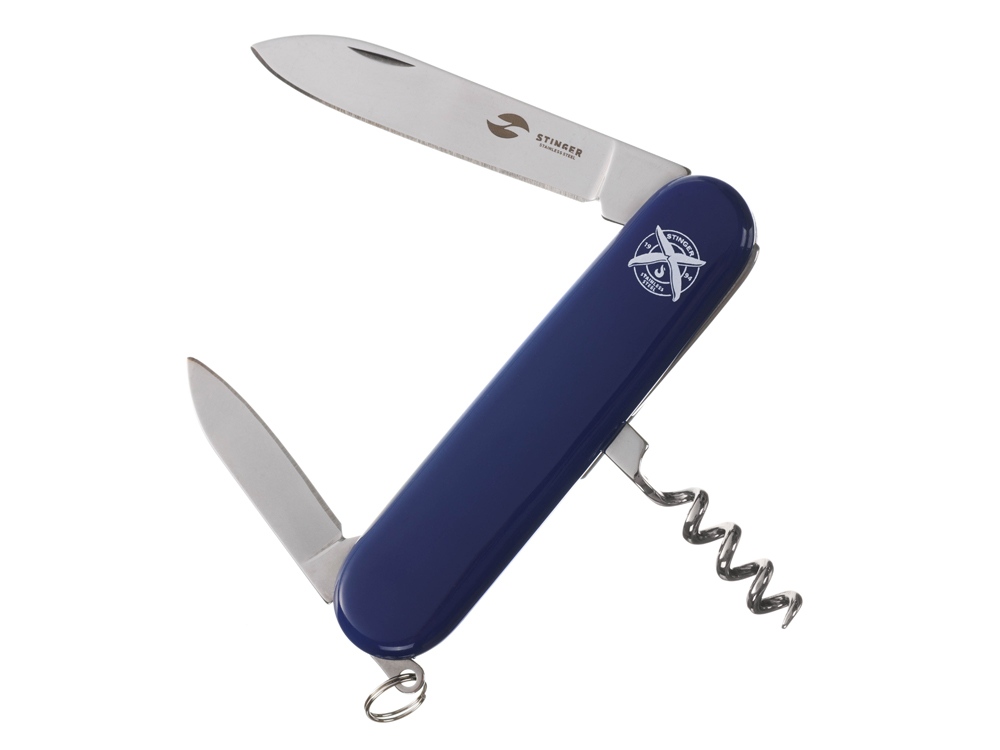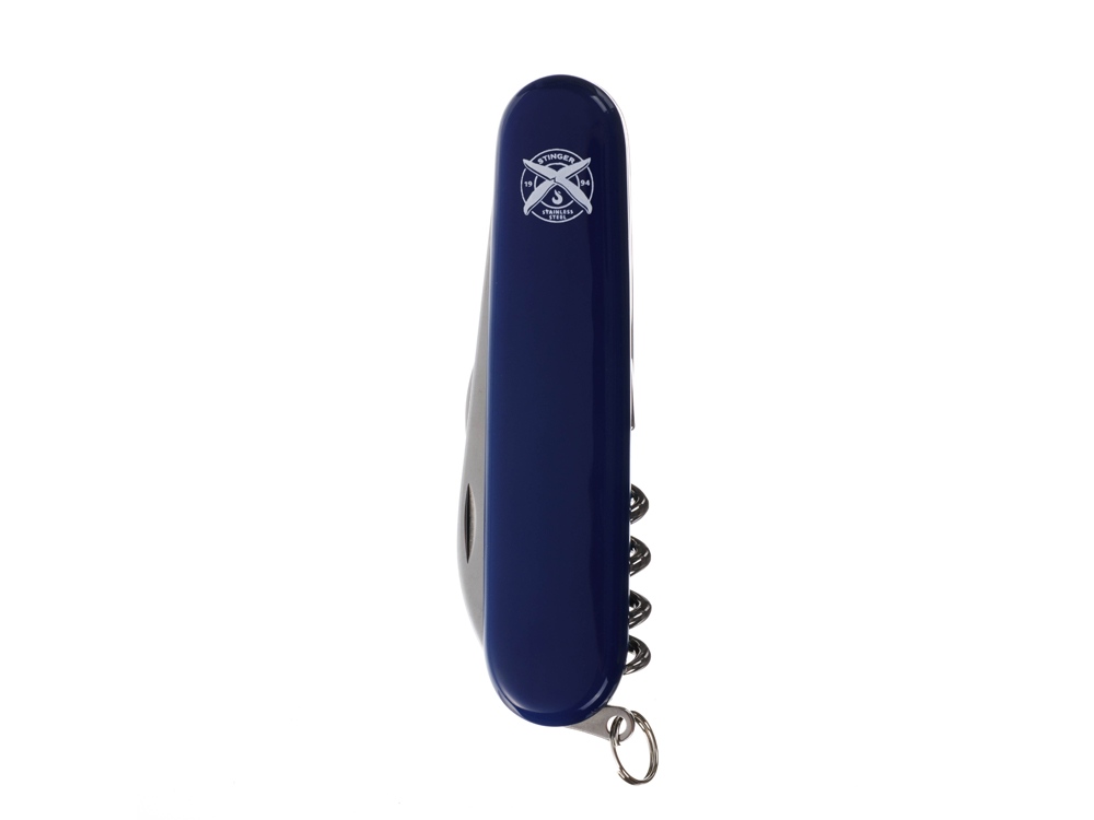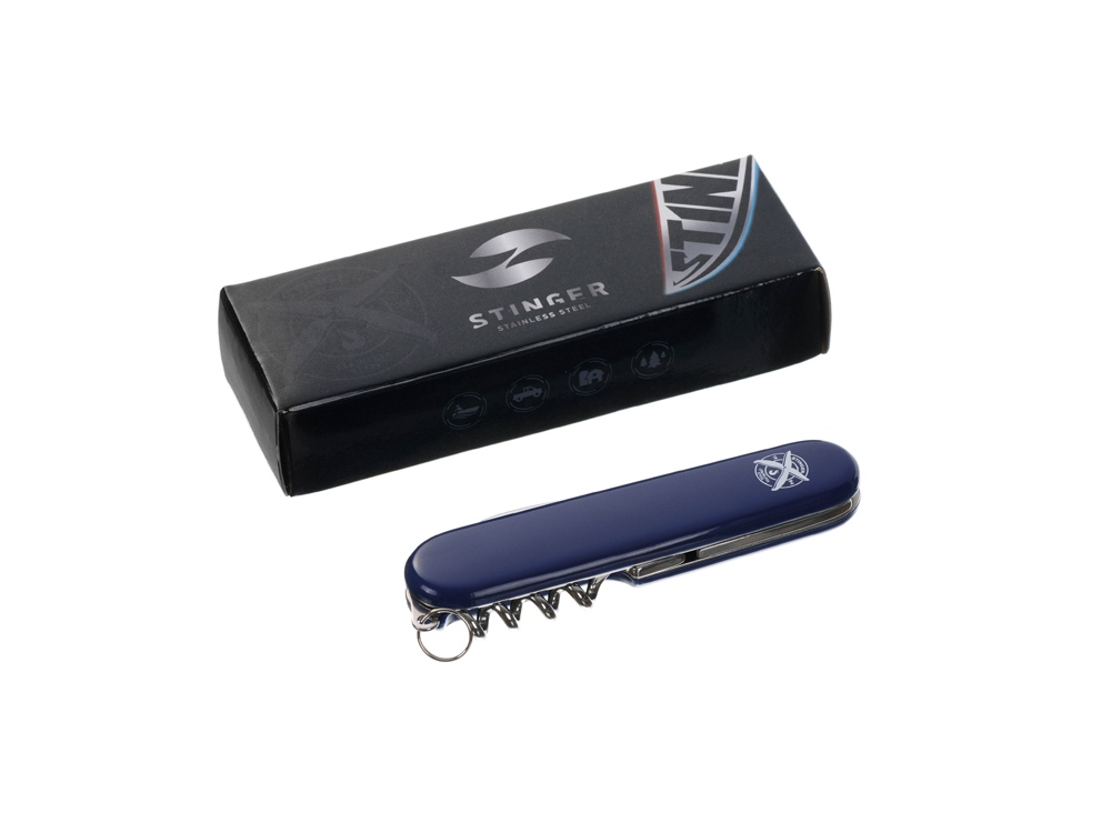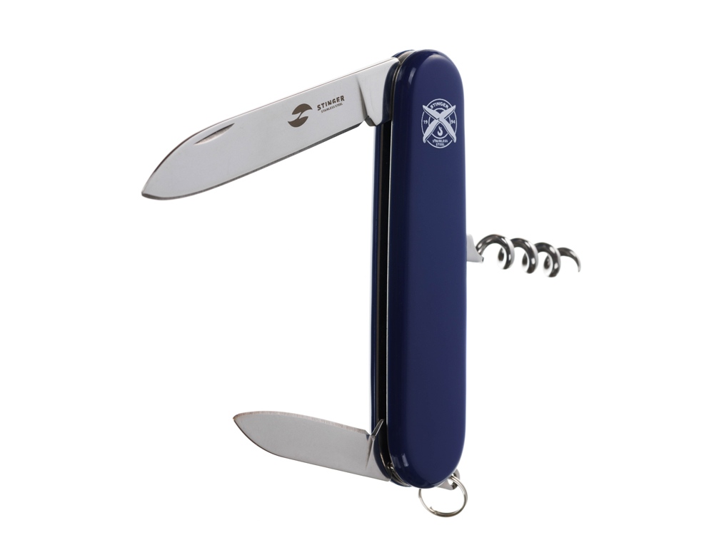 Нож перочинный STINGER имеет 4 функции: 1. Большое лезвие 2. Малое лезвие 3. Штопор 4. Кольцо для ключей ХАРАКТЕРИСТИКИ Материалы • лезвие/инструменты: нержавеющая сталь 420, твердость 44-48 HRC • рукоять: нержавеющая сталь 420, твердость 44-48 HRC • накладки рукояти: АБС-пластик Размеры • Размеры ножа: 90х26,5х14 мм • Общая длина: 160/131, мм • Длина клинка: 67,7/40,2 мм • Наибольшая ширина клинка: 12,3/9,2 мм • Толщина обуха: 2,5/1,5 мм • Длина рукояти: 92,3/90,9 мм • Ширина рукояти (в ср.части): 20,3 мм • Толщина рукояти (в ср.части): 12,2 мм Вес: 55 г Цвет накладок рукояти: синий Накладки рукояти ножа не подлежат замене. Упаковка: картонная коробка