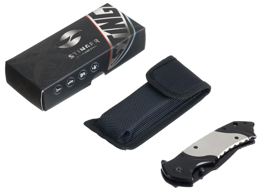 НОЖ СКЛАДНОЙ STINGER Повседневный нож из прочных материалов. Легкий и неприхотливый в обслуживании. Рукоять ножа произведена из нержавеющей стали, собрана на втулках - бонках, поэтому при необходимости нож можно легко промыть. Нож быстро открывается при помощи флиппера с ассистом (механизм ускоренного открывания). На рукояти расположено отверстие для темляка и клипса для удобного размещения ножа в кармане. Клинок ножа произведен из жаропрочной мартенситной стали 3Cr13. Преимуществом этой стали является отличное противодействие коррозии благодаря высокому содержанию хрома (13%). Оптимальное содержание легирующих элементов в составе сплава 3Cr13 придает ему хорошую твердость в диапазоне 52-55 HRC. Из-за низкого содержания углерода (0,3%) заточку лезвие из такой сталь держит средне, но легко затачивается даже после активной эксплуатации ножа. При этом дополнительных аксессуаров для заточки не требуется, достаточно простого точильного камня или мусата. Характеристики: Материал клинка: нержавеющая сталь 3CR13 Твердость по шкале Роквелла: 52-55 HRC Материал рукояти: нержавеющая сталь Метод открывания клинка: флиппер с ассистом (механизм ускоренного открывания) Фиксатор клинка: Liner Lock Длина ножа: 200 мм Длина клинка: 80 мм Толщина клинка: 3 мм Вес: 210 г. Цвет рукояти: серебристый/черный Особенности: рукоять с клипом и отверстием под темляк В комплекте: нейлоновый чехол