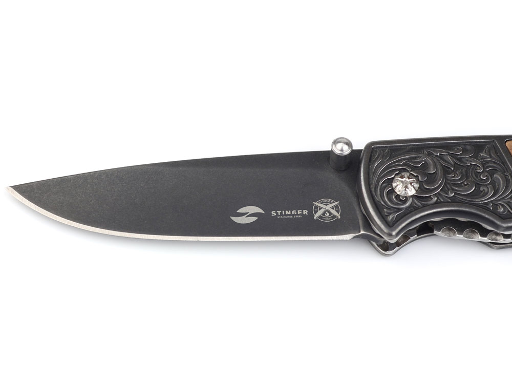 НОЖ СКЛАДНОЙ STINGER Материал лезвия: нержавеющая сталь марки 3Cr13 Материал рукояти: сталь с элементами из дерева Фиксатор лезвия: Liner Lock Длина ножа: 167 мм Длина клинка: 71 мм Толщина клинка: 3 мм Вес: 120 г Цвет рукояти: коричневый Метод открывания клинка: шпенёк (подпальцевый упор на лезвии)