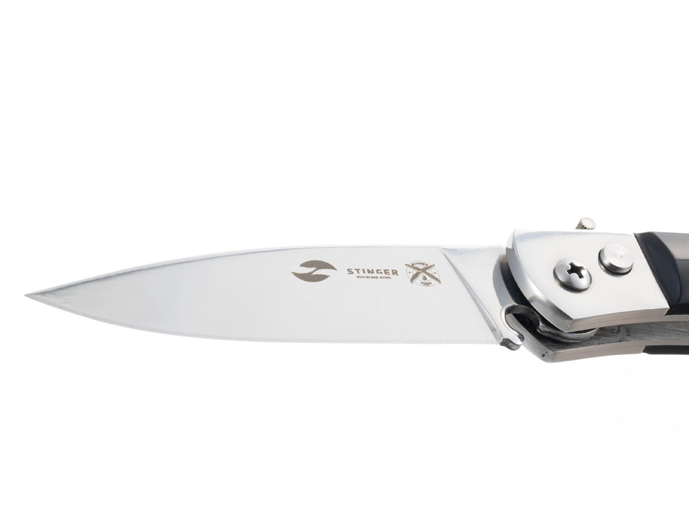 НОЖ СКЛАДНОЙ STINGER Материал лезвия: нержавеющая сталь марки 420 Материал рукояти: нержавеющая сталь, древесина венге Фиксатор лезвия: Rolling Lock Длина ножа: 207 мм Длина клинка: 90 мм Толщина клинка: 2 мм Вес: 115 г Цвет рукояти: чёрно-серебристый Метод открывания клинка: автомат В комплекте: нейлоновый чехол