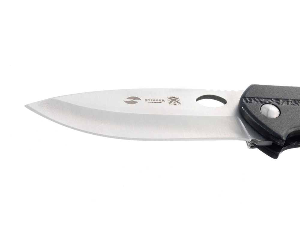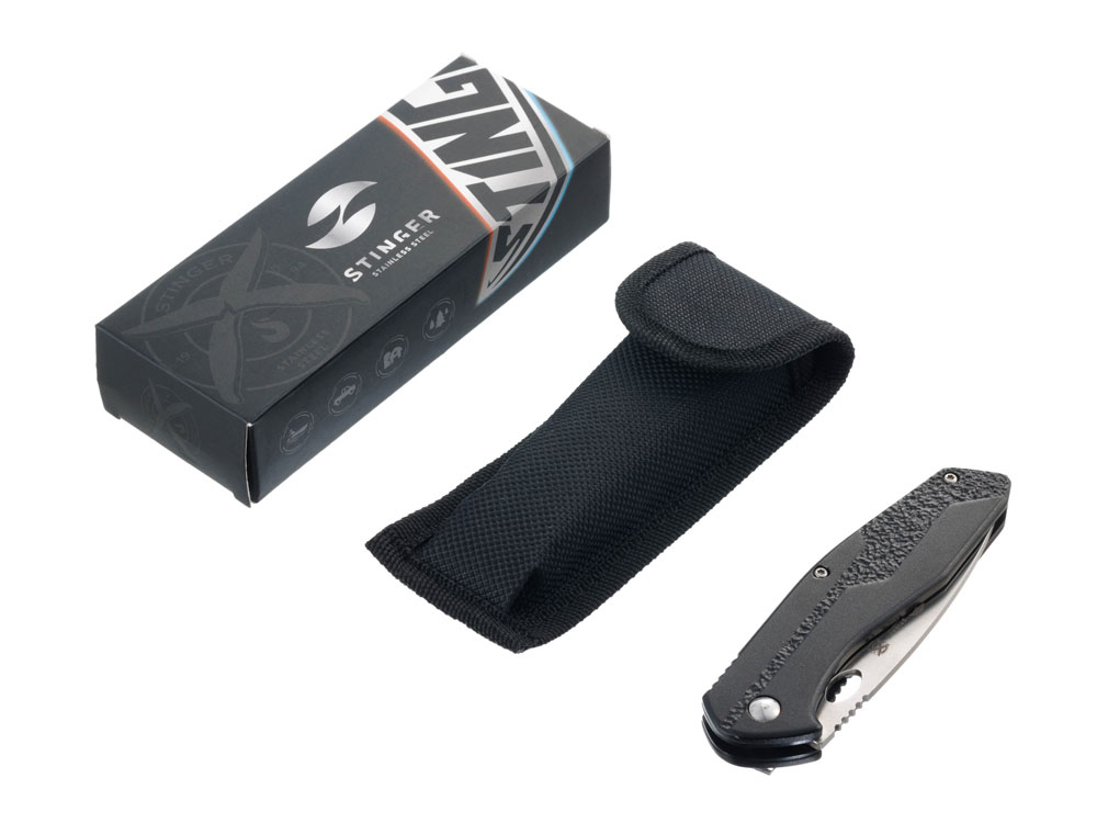 НОЖ СКЛАДНОЙ STINGER Материал лезвия: нержавеющая сталь марки 420 Материал рукояти: алюминий Фиксатор лезвия: Liner Lock Длина ножа: 200 мм Длина клинка: 95 мм Толщина клинка: 3 мм Вес: 134 г Цвет рукояти: чёрный Метод открывания клинка: подпальцевое отверстие на лезвии Особенности: с клипом В комплекте: нейлоновый чехол