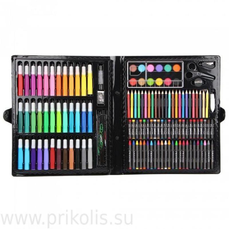 Большой набор для рисования в чемоданчике (150 предметов) – универсальный и полезный подарок для любого малыша независимо от возраста. Если вы хотите порадовать юного художника или раскрыть талантливую творческую натуру, рекомендуем купить сразу полный комплект, состоящий из 150 разных мелков, фломастеров и прочих полезных вещиц, упакованных в один чемоданчик. Подобная покупка – существенная экономия, ведь цена набора невысока в сравнении с приобретением всех составляющих по отдельности. Подарите ребенку яркий и красочный мир, позвольте ему проявить фантазию!