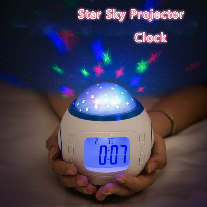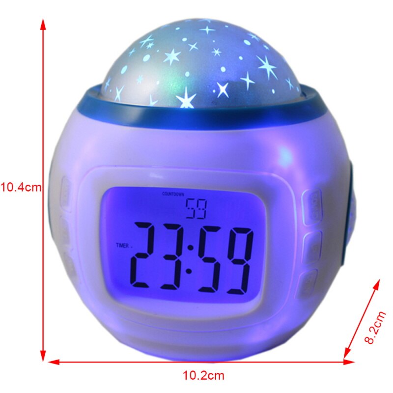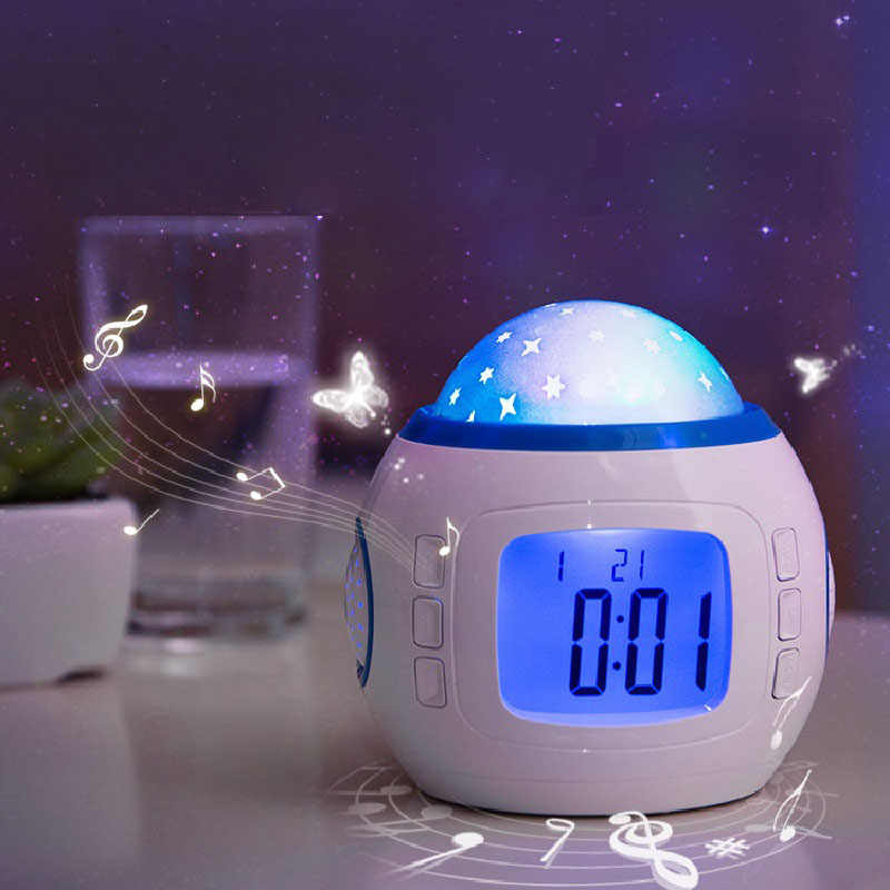Любое утро станет добрым, если пробуждение прошло хорошо. Будильник с проектором звезд и звуками природы поможет наполнить каждое утро хорошими эмоциями и сделает ваше пробуждение максимально приятным. Кроме будильника. Здесь вы найдете таймер, проектор, а также возможность выбрать мелодию, под которую вы проснетесь утром, термометр и календарь.