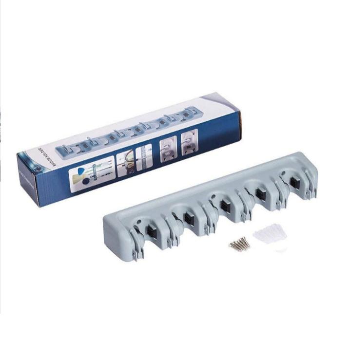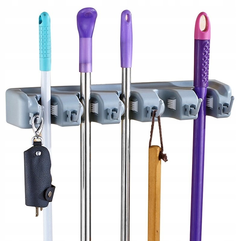 • Держатель для пяти хозяйственных принадлежностей (43 см) поможет упорядочить уборочный инвентарь