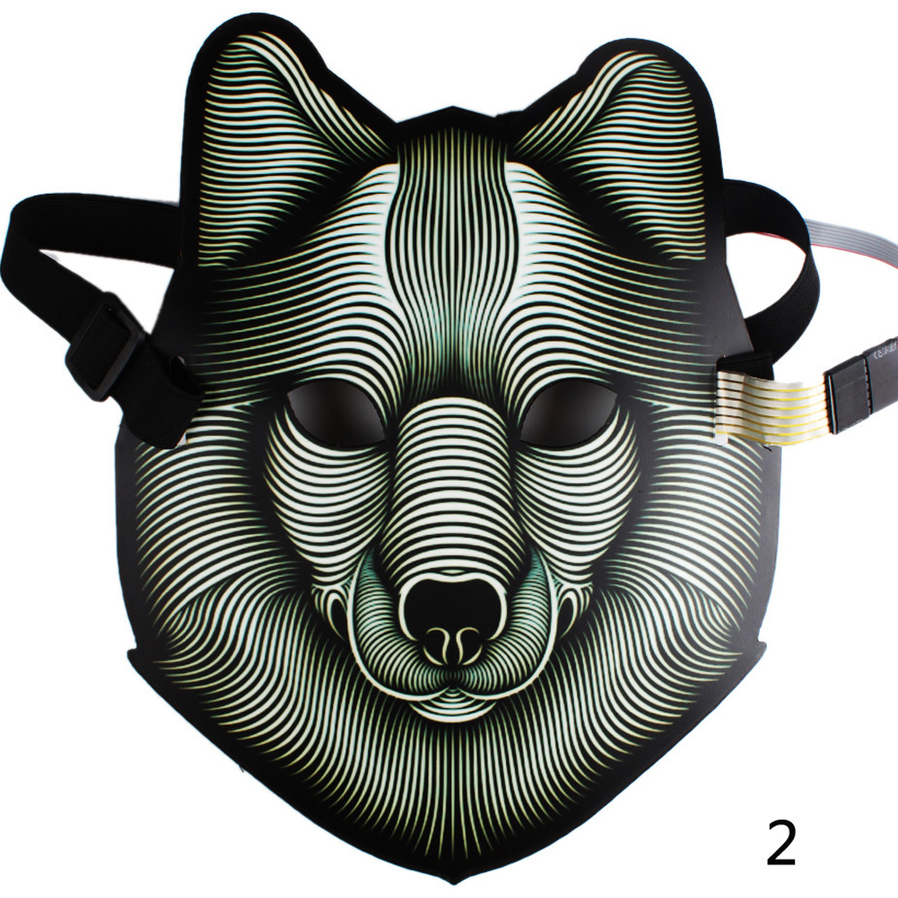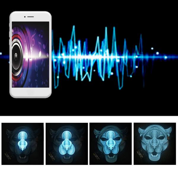 Особенности светодиодная маска состоит из фосфорных чернил, материал потребляющий минимальную мощность, холодный на ощупь и излучающий привлекательное свечение. Модуль маски преобразует звуковые волны в запрограммированный рисунок, излучающий чистый органический свет.