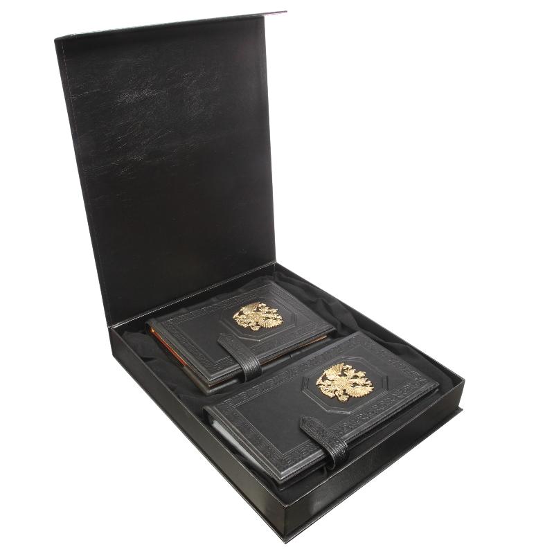 Секрет удавшихся предприятий может поведать мужской подарочный набор Успех. Здесь вы найдете все, что нужно преуспевающему бизнесмену в наше время – ежедневник с золотым тонированием и визитница на 160 карточек, изготовленнные из натуральной кожи и декорированы латунным орлом.