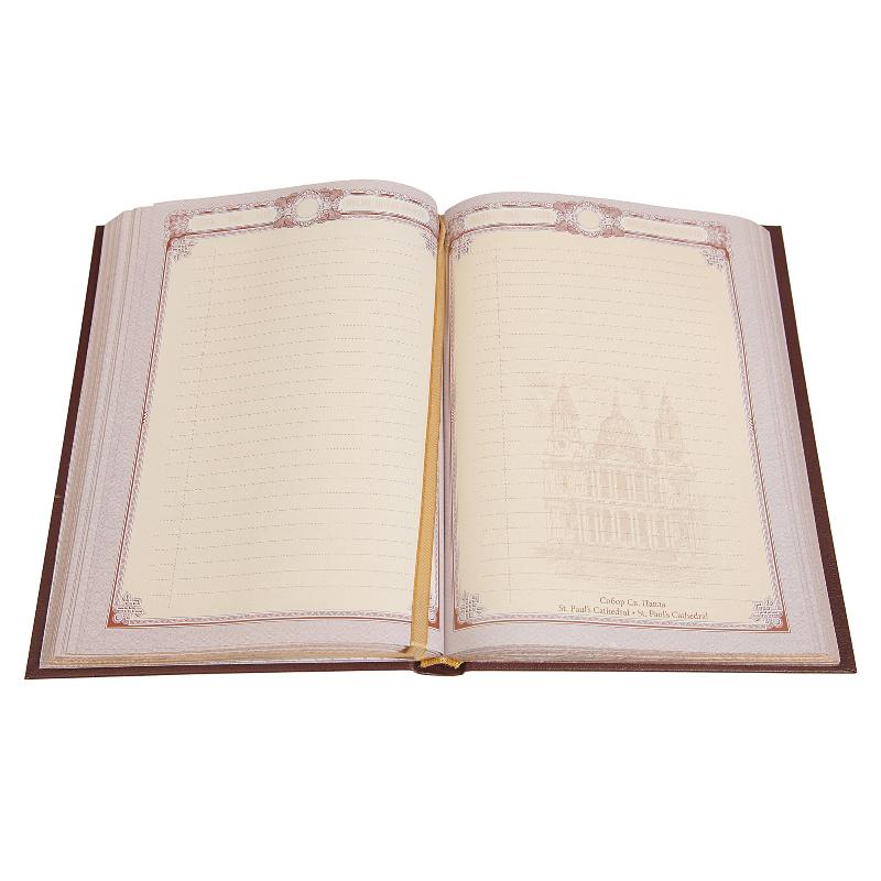 Ежедневник 318 недатированных страниц в линейку с видами шедевров мировой архитектуры с описанием на русском, английском и немецком языках, удобная петелька для ручки, художественное литье, художественное тиснение, хлястик на магнитной кнопке, срез блока с трех сторон тонирован золотом, закладка в виде ленточки-ляссе