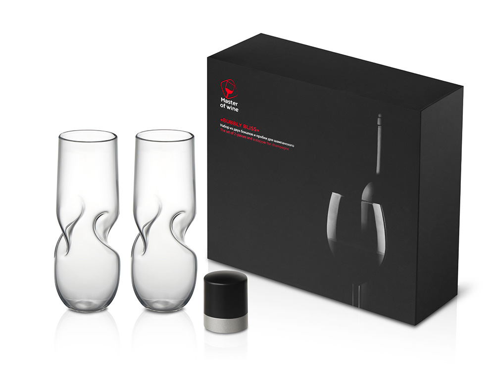 Набор для шампанского Bubbly Bliss создан для тех, кто ценит стиль, удобство и атмосферу праздника. Два изящных бокала объёмом 260 мл поражают необычной формой — их поверхность слегка изогнута, создавая не только эффектный визуальный акцент, но и особое удобство: пальцы словно попадают в естественные пазы, благодаря чему бокал идеально ложится в руку. - боросиликатное стекло — прочное, тонкое и устойчивое к перепадам температуры - бокалы можно мыть в посудомоечной машине, пробку - нельзя - продуманная форма подчёркивает игру пузырьков и делает дегустацию особенно приятной В комплект входит пробка для шампанского с надёжным прокручивающимся механизмом — она герметично закрывает бутылку, сохраняя свежесть и вкус игристого на несколько дней. Всё это упаковано в качественную подарочную коробку, которая делает набор готовым решением для подарка — стильно, практично и с намёком на праздник в каждом глотке.