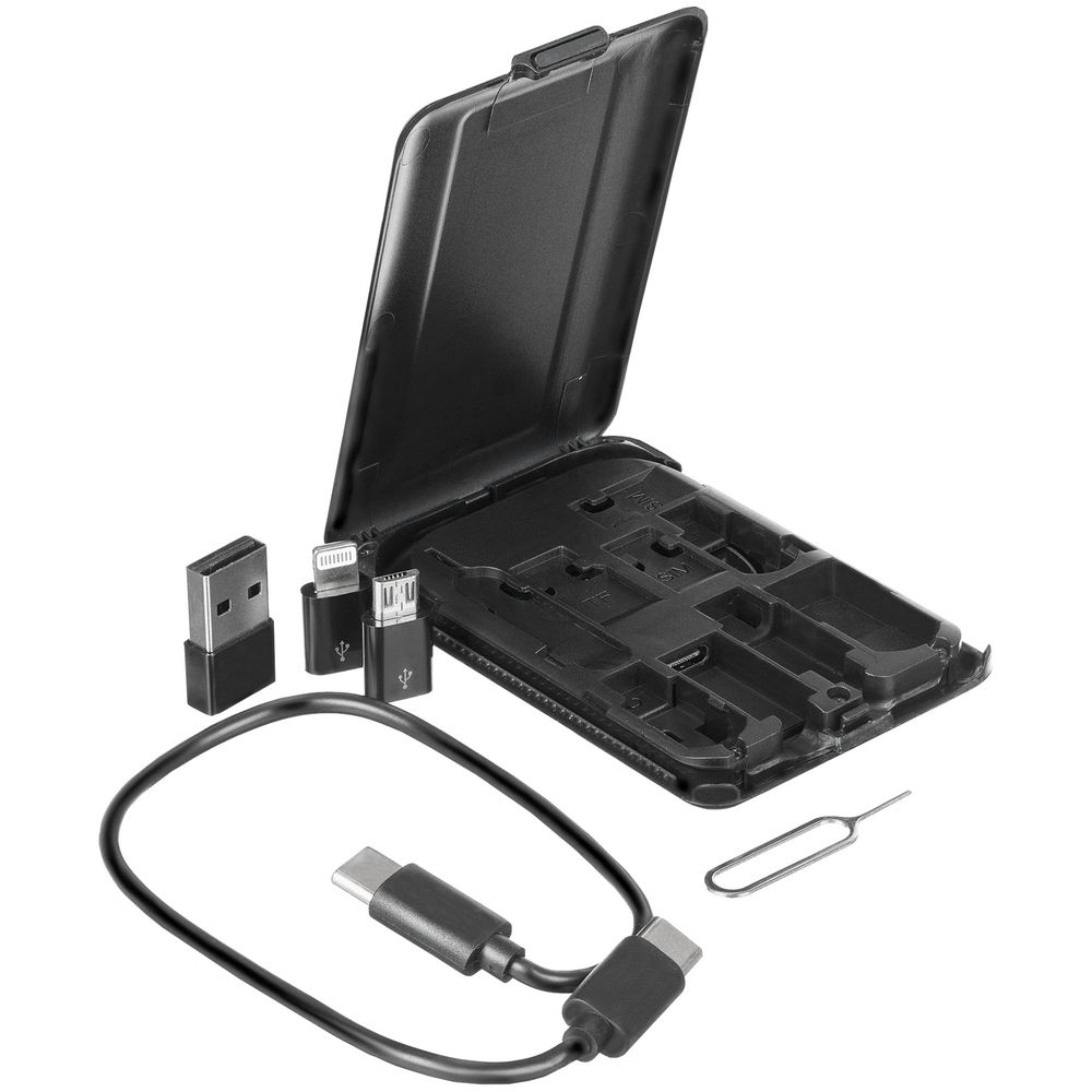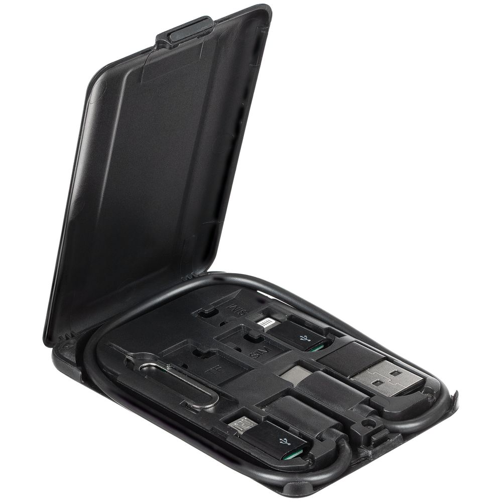 Органайзер с беспроводной зарядкой и набором адаптеров Octopod, черный купить оптом и в розницу с нанесением логотипа в Москве