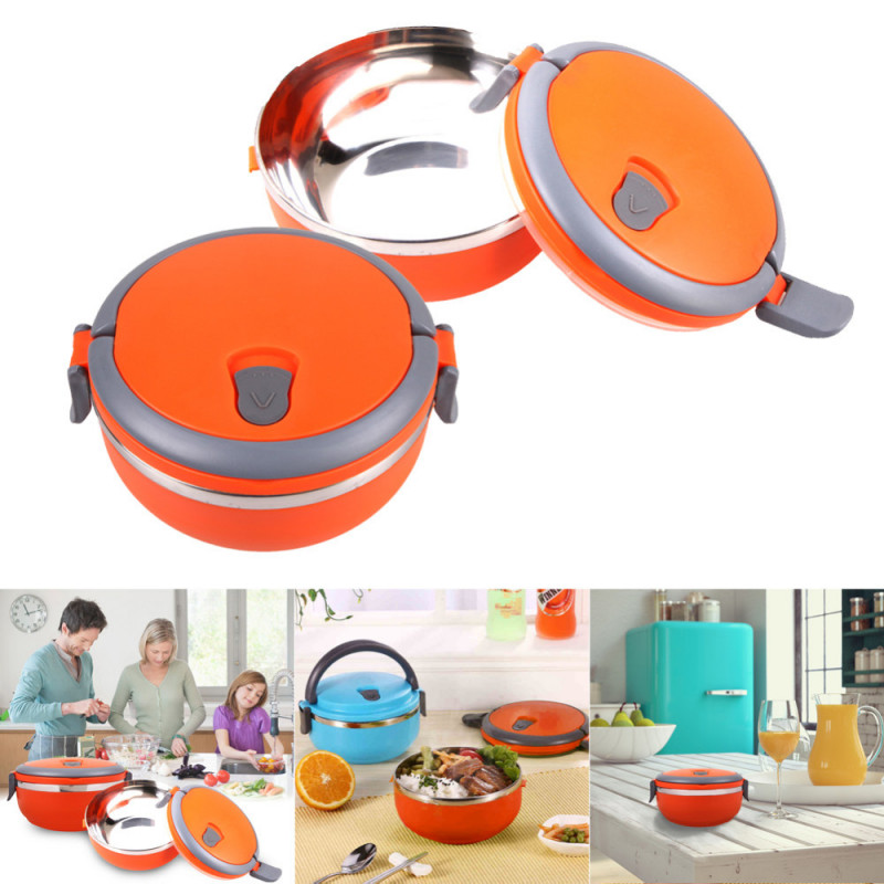 Если кто-то привык есть обеды из трех блюд и непременно желает их отведать даже на работе, то мы его порадуем – в данном ланч-боксе целых три герметичных и сохраняющих температуру отсека. Основа из нержавеющей стали покрыта для надежности и большей термоизоляции толстым слоем пластика. Веселые цвета корпуса поднимут настроение перед обедом.